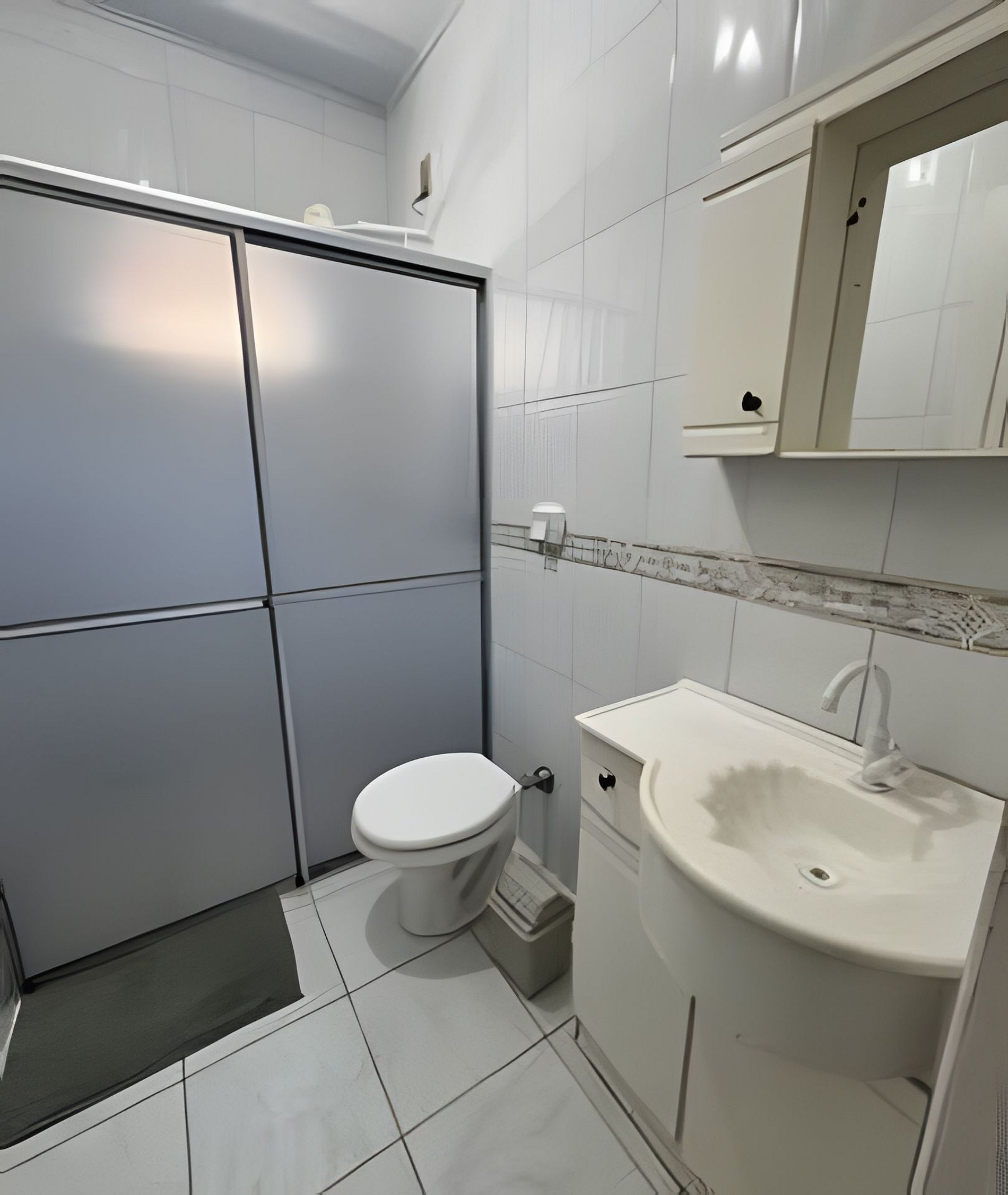 3 quartos sendo uma suíte Banheiro social Cozinha Mesa de jantar para 6 pessoas TV Smart Sacada com churrasqueira e vista mar. Suite ar condicionado parede Quarto 01 ar condicionado parede Quarto 02 ar condicionado portátil 12 mil btus. 50 metros da Praia do Quilombo Uma vaga de estacionamento no pátio Apenas andar de cima, pátio compartilhado