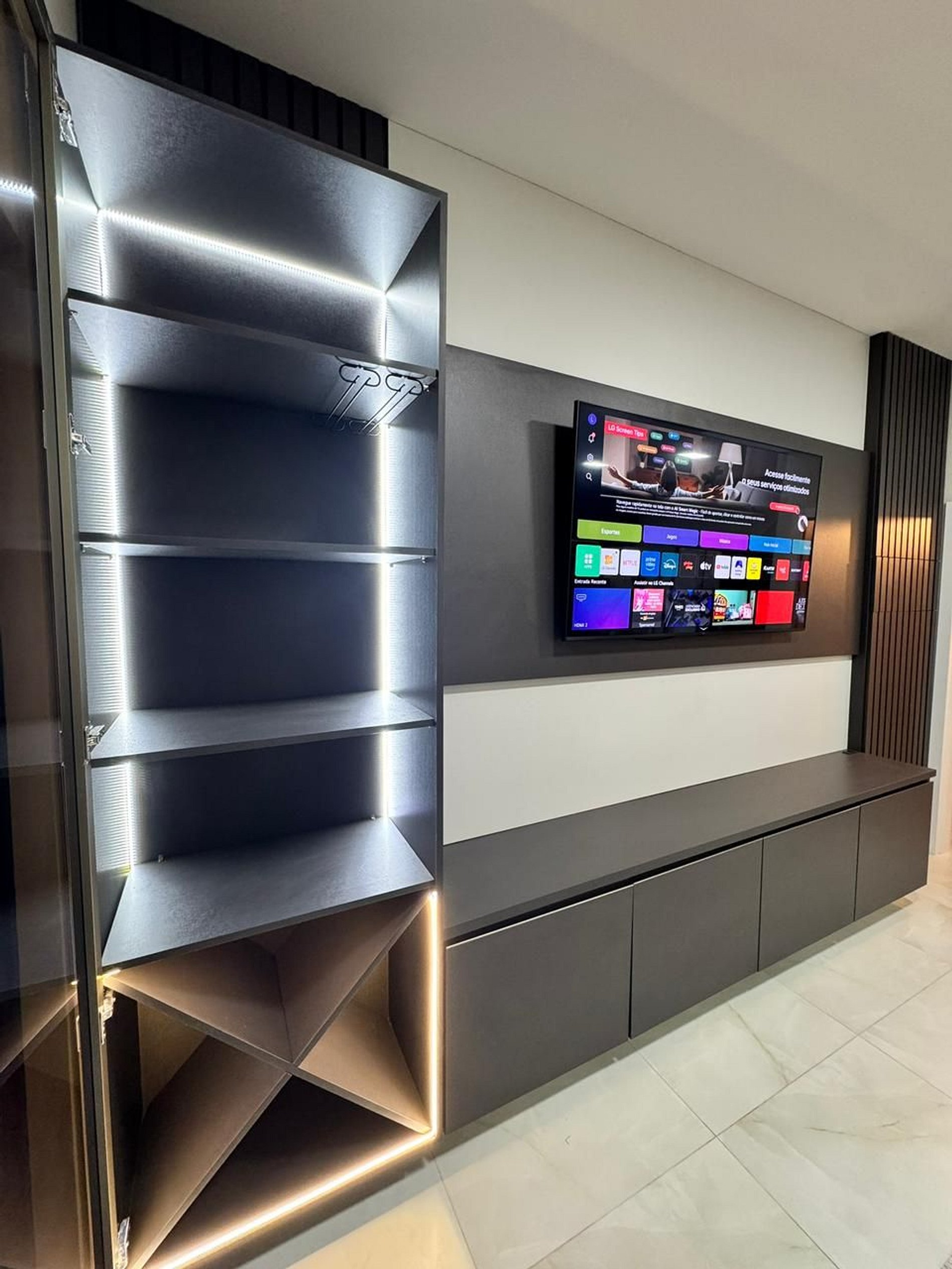 *Sala ampla com Smart TV 60" e controle Smart Magic