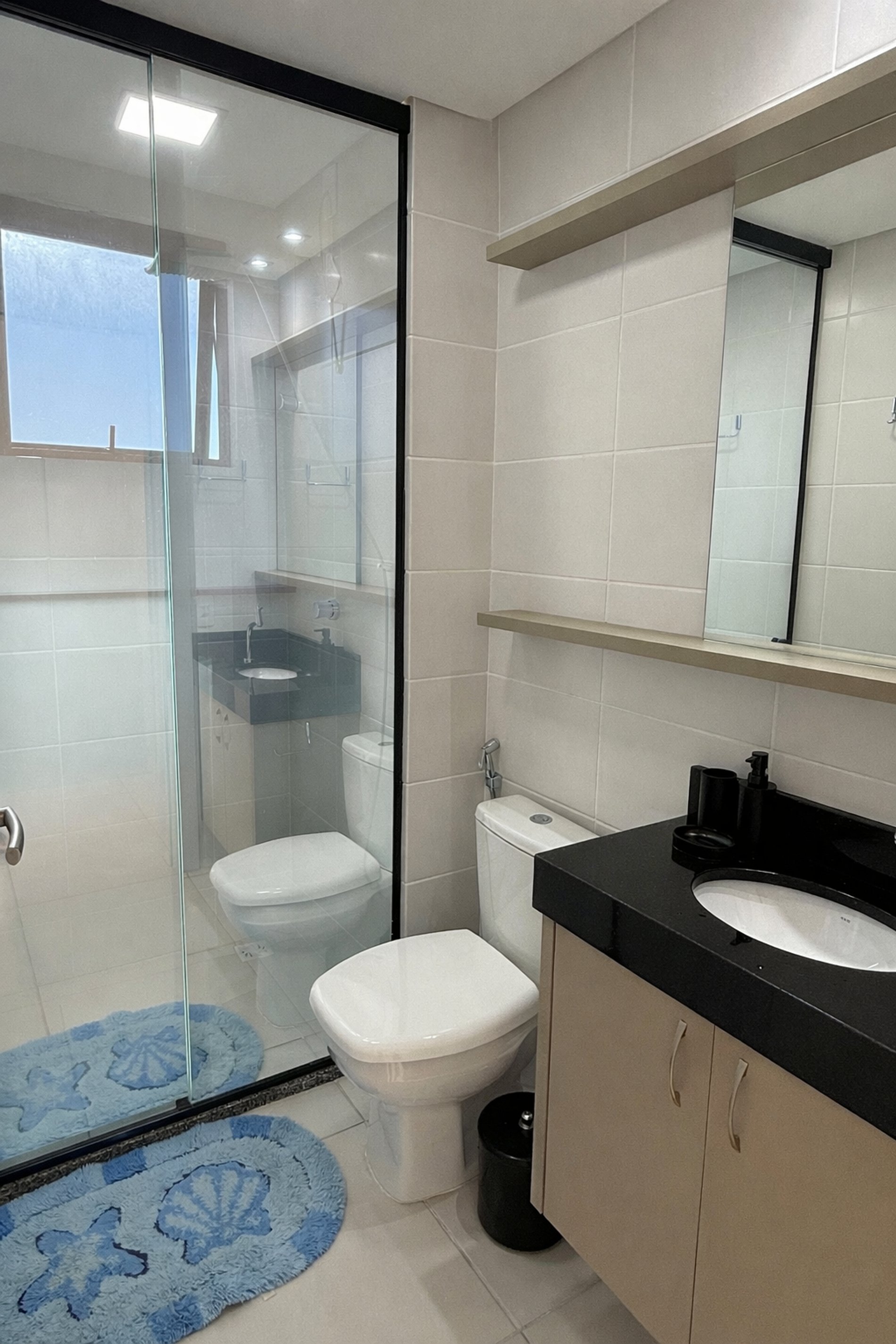 *Banheiro moderno com ducha quente