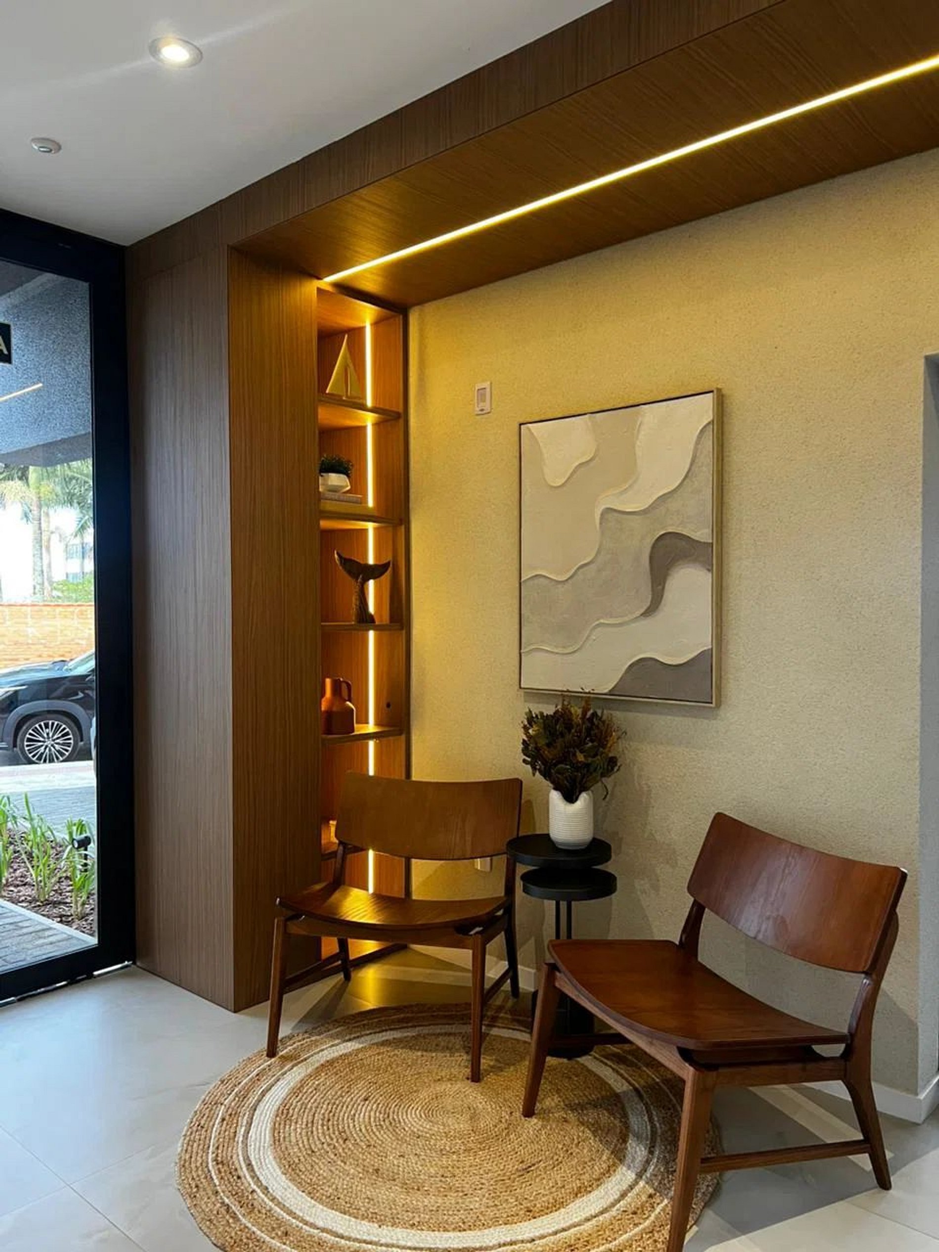 Hall de entrada decorado e mobiliado