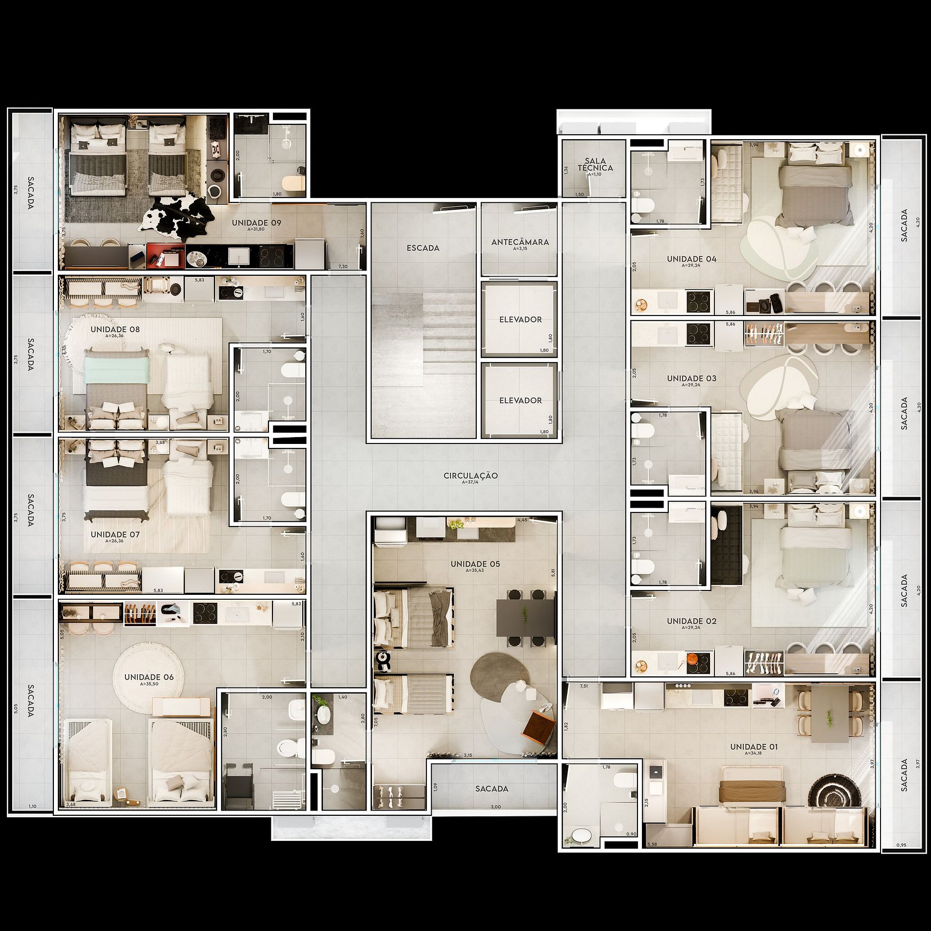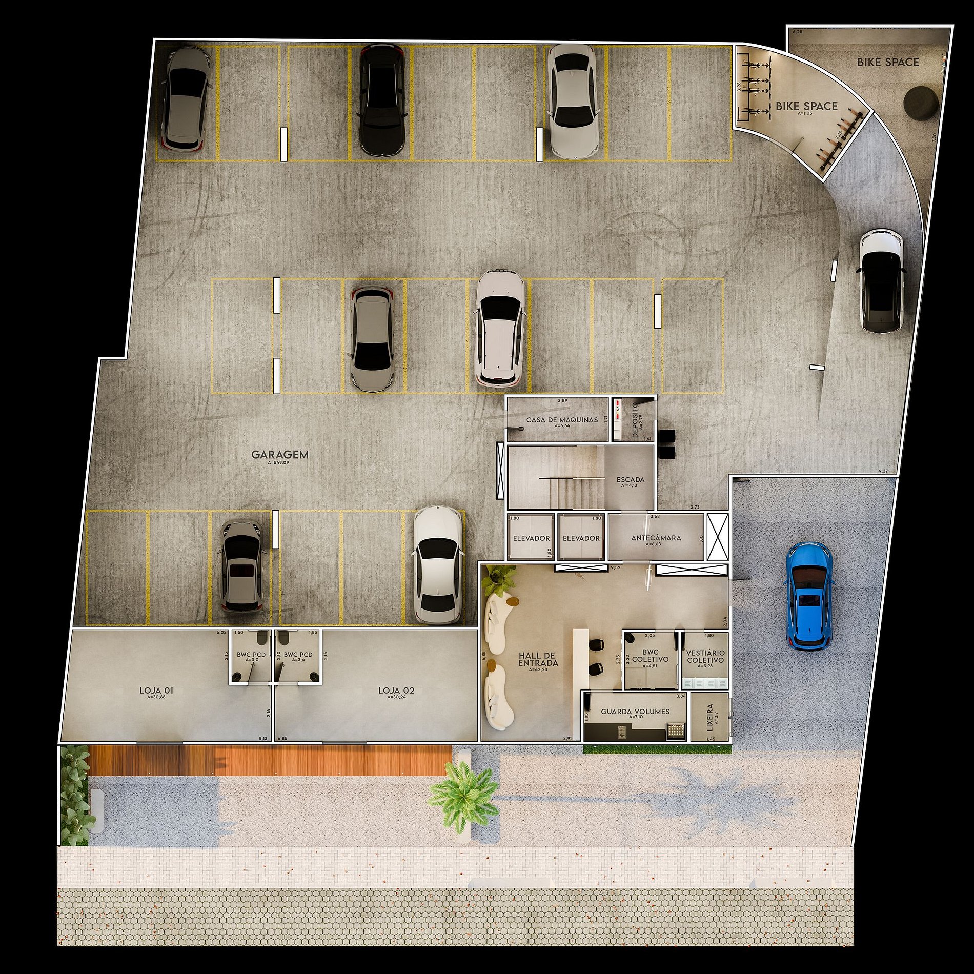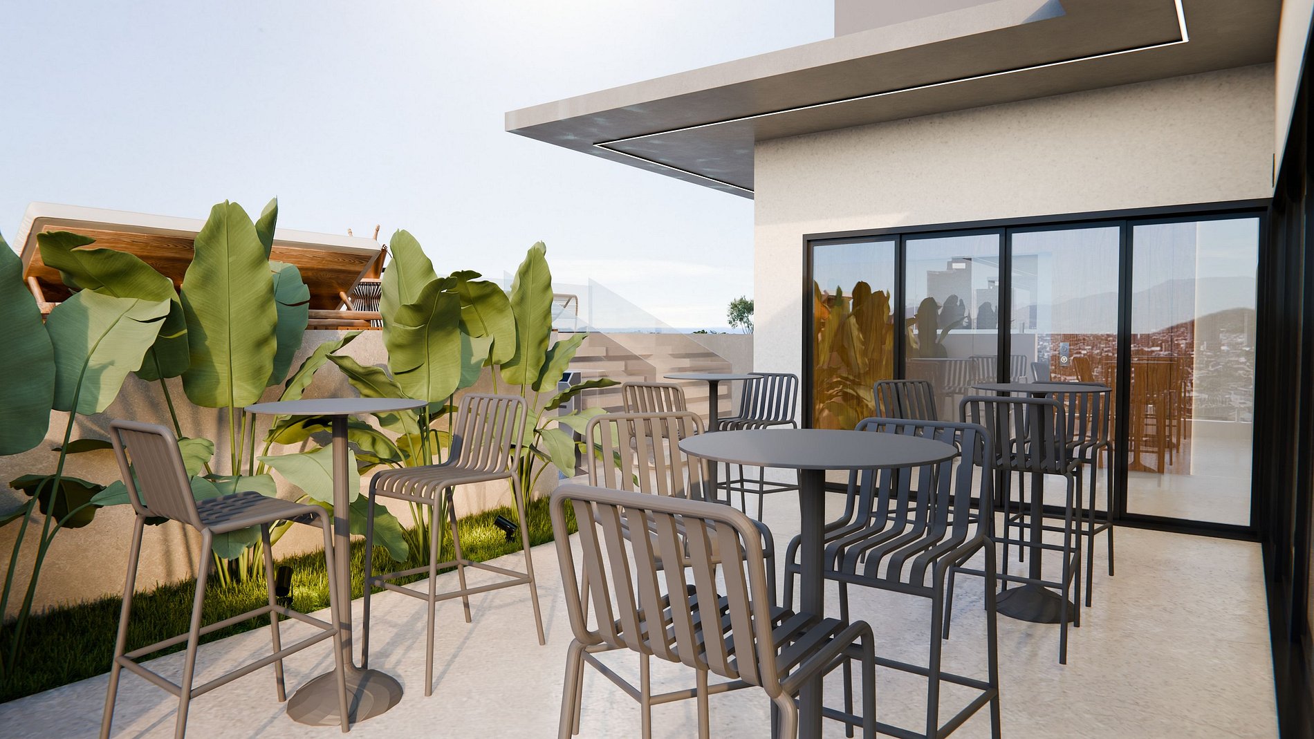 Entre as soluções do Pinna Studios estão energia solar, reaproveitamento da água da chuva e estações de recarga para veículos elétricos. O sistema de controle digital de acessos e a integração com plataformas como Airbnb e Booking ampliam a rentabilidade, alinhando o empreendimento às tendências de hospitalidade e sustentabilidade no mercado imobiliário