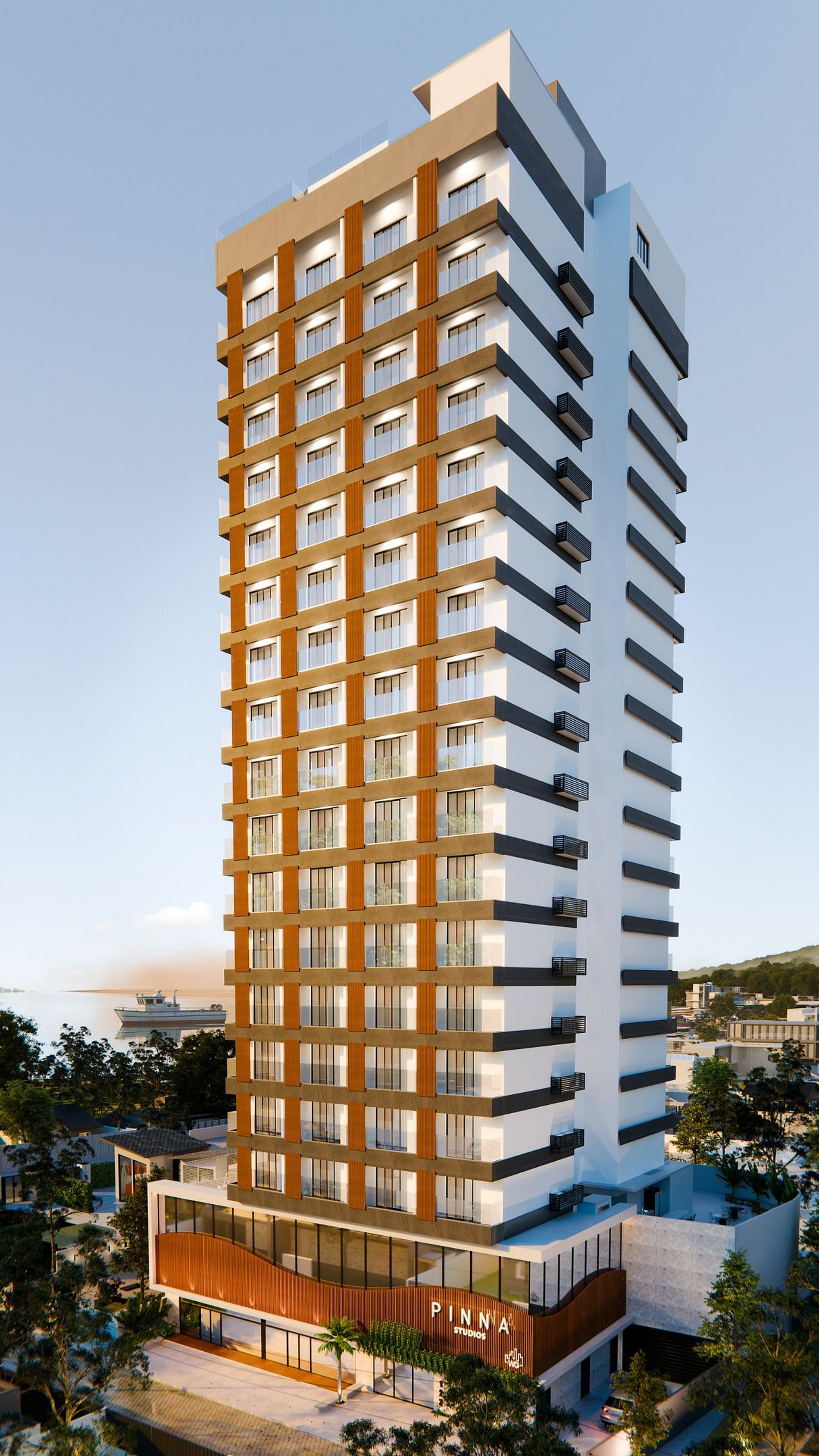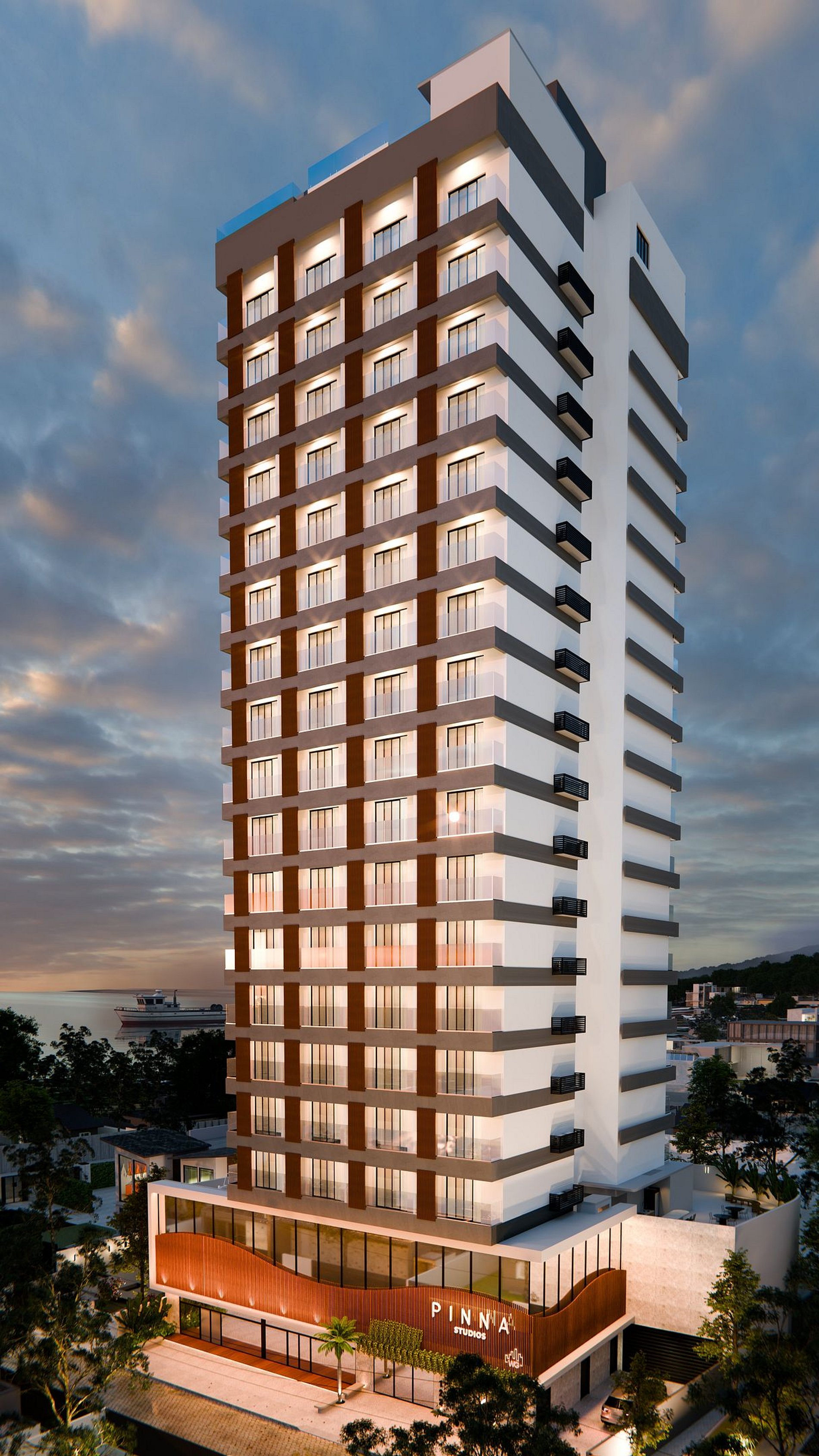 O Pinna Studios é um lançamento da WG Construtora na Armação, em Penha. Composto por studios de 1 quarto e metragens entre 26 e 35 m², o projeto reúne soluções voltadas para moradia compacta e hospedagem inteligente, integrando tecnologia e praticidade no litoral catarinense.
